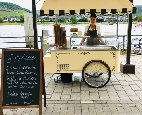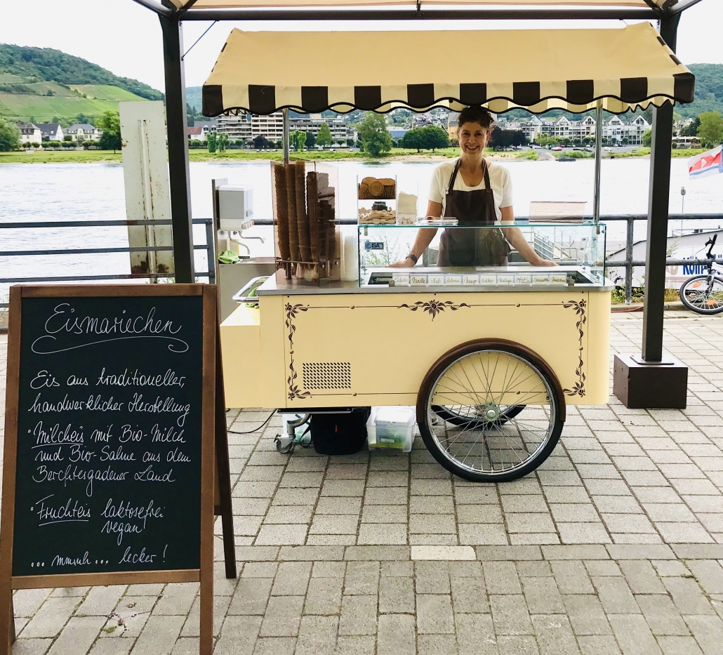 Mein Eis-Produzent, den ich persönlich kenne und schätze, hat genauso hohe Ansprüche an seine Arbeit wie ich und Qualität ist für ihn genauso wichtig wie für mich. Aus diesem Grund wird das Eis ohne künstliche Zusatzstoffe hergestellt und die Milch kommt von Bauernhöfen aus der Region. Die Sorbets sind komplett ohne tierische Inhaltsstoffe gefertigt und somit vegan und laktosefrei.